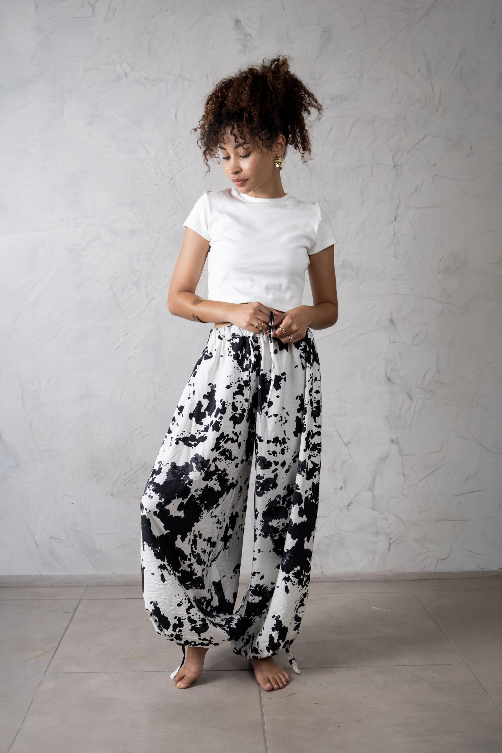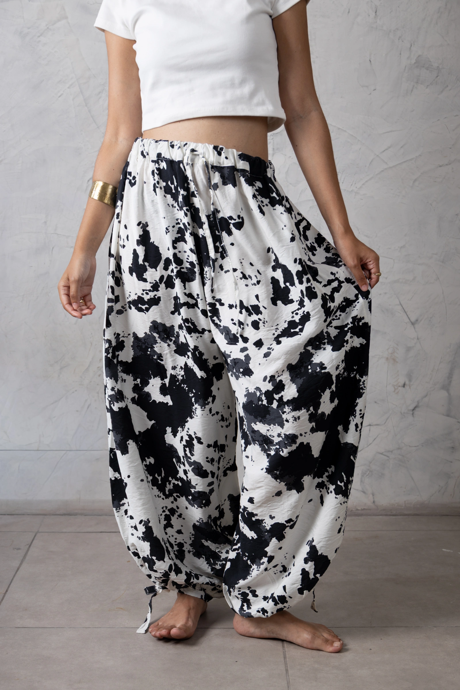 Recomendamos lavar la prenda del revés en agua fría para mantener la nitidez de las manchas negras del cow print por mucho más tiempo. 🧺